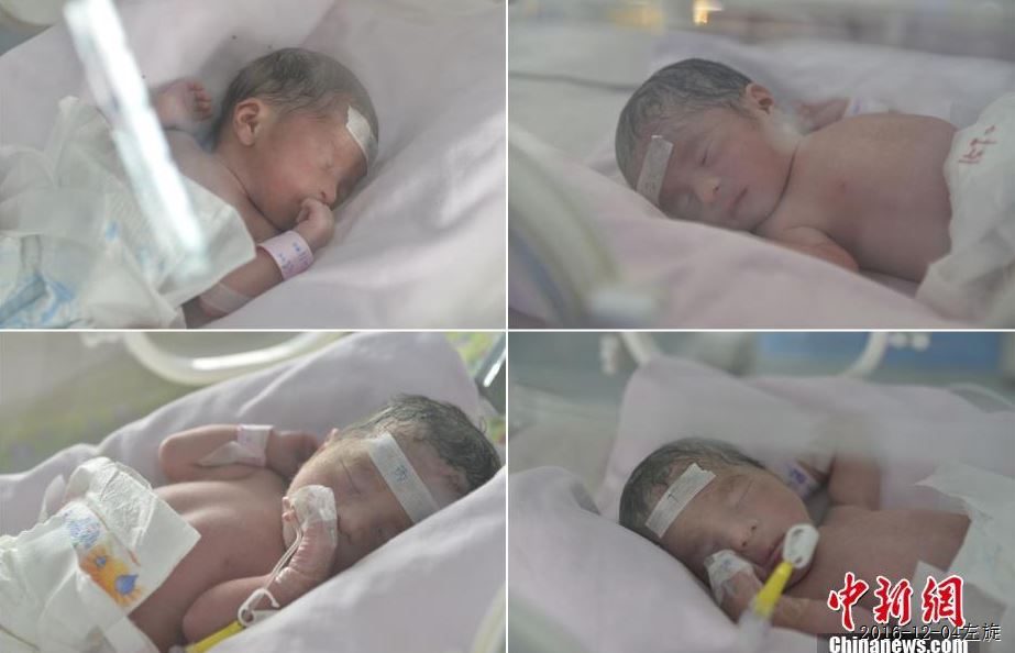 见,概率非常低。图为在新生儿保温箱内的四胞胎姐妹十分可爱,萌化人心。(拼版图片) 胡静 摄